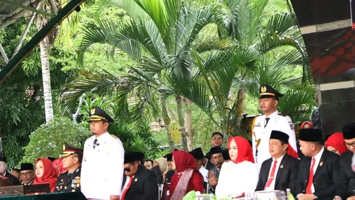 Upacara penaikan bendera merah putih berlangsung lancar dan penuh khidmat. Peserta yang terdiri atas ASN, TNI-Polri, pelajar, organisasi masyarakat, hingga masyarakat umum, berdiri dengan tertib dan khusyuk mengikuti jalannya prosesi. Sorak tepuk tangan mengiringi pasukan pengibar bendera (Paskibraka) yang sukses menjalankan tugas dengan penuh disiplin dan percaya diri.
