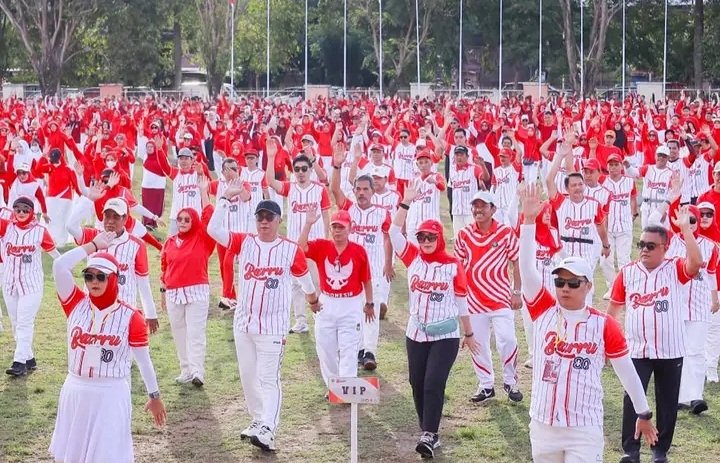 Narasisulsel.id Barru – Ribuan warga memadati Lapangan Sumpang Binangae, Senin (11/8/25), mengikuti Senam Massal Merah Putih yang menjadi rangkaian peringatan HUT ke-80 Kemerdekaan RI.